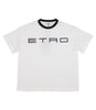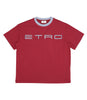 Etro Kids burgundy and aviation cotton T-shirt, crew neck edged in contrasting color, with short sleeves, 'Etro' lettering logo on chest, straight hem, regular fit