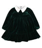 Soft velvet La Stupenderia dress with classic pointed collar, long sleeves with elastic cuffs, invisible back zipper closure, pure cotton inner lining, trapeze pattern.