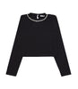 Lu Lu Girl cotton T-shirt, round neck embellished with rhinestone decoration, long sleeves, straight hem.