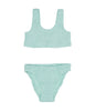 MC2 Saint Barth Kids bikini swimsuit in textured fabric with bandeau top with wide straps and regular bottom.