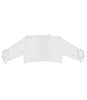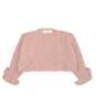 Refined cotton thread shrug with ripple border and sleeves with gathered cuffs