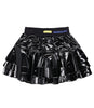 Monnalisa skirt thought for rock style, short model in vinyl fabric, waist with logoed elastic band, overlapping ruffle length, super soft suede effect interior and muslin lining.