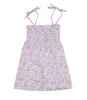 Red Fish Beachwear dress in white, pink and light blue cotton with suspenders, elasticated band and floral print.