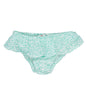 Red Fish Beachwear swimsuit brief in teal lycra with flounce and fish pattern.
