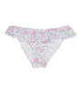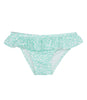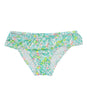 Red Fish Beachwear swimsuit brief in teal lycra with flounce and fish pattern.