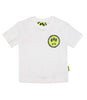 Cotton Barrow Kids T-shirt with logo print on front and Barrow watercolor print on back.