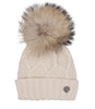 Blauer Junior hat in warm wool-blend fabric, braided knit, real fur pompom, with lapels, logo metal plaque on front.