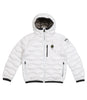 Blauer Junior Brinton jacket in quilted technical fabric with horizontal waves distinctive motif of the brand. Fixed hood, zipper closure and slider cover on neck, Natural 90/10 padding.