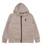 Blauer Junior Colby jacket made of slightly stretchy crease-resistant neoprene with hood, zipper closure, logo loop on left side chest, open welt pockets on front, long sleeves with cuffs, and logo patch on left sleeve.