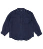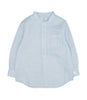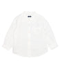 Long-sleeve regular-fit 100% linen shirt in white with mandarin collar, front button placket and heart-side pocket with matching embroidery. Rounded hem, back yoke and buttons on cuffs.