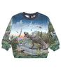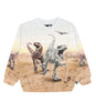 Miksi sweatshirt is a fantastic realistic print of two Atrociraptor dinosaurs running at full speed with a plane overhead.