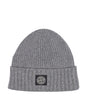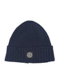 Stone Island Junior hat in ribbed wool and cashmere blend. Fineness 8., cap style with vertical ribbing and wider ribbed lapel. Logoed in the lapel for an essential style.