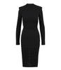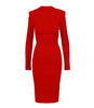 Aniye By Ivy Midi fitted model dress in skimpy, midi length. High neck and long sleeve details create a sophisticated, wrap silhouette with a perfect fit.