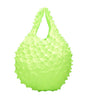 Bunzaburo Petit Bag made of stretch satin sewn in a circular shape with a spiny Bai shibori pattern, named after a type of mollusk that resembles its shape. Petit model with variable size according to the weight and capacity of the items stored inside. Use as a bag or as an inner bag for PVC bags.