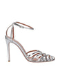 Castagna Miami sandal made of leather in patent leather finish. Model features perforated weave pattern upper, adjustable strap with small buckle at ankle, leather sole with non-slip, covered heel.