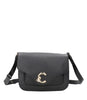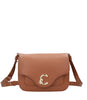 - Flap closure with gold metal C-Me logo placed on front