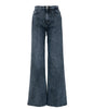 Don the Fuller high waist flare model jeans with green lacquered vintage button and green jacron salpa.