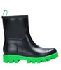 Gia Borcghini Giove ankle boot in black rubber and green contrasting sole that will accompany you and give a glamorous touch to your look in all rainy days.