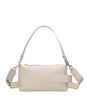 - Adjustable and removable leather shoulder strap with silver metal hooks