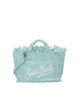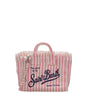 MC2 Saint Barth Vanity Mini Linen hand bag, side bangs, fixed handles, 'Saint Barth' logo on front.