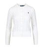 Polo Ralph Lauren cardigan made of pure cotton with a classic cable-knit design, exclusive embroidered pony on the chest, short and fitted silhouette with a crew neck and front button closure.