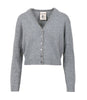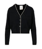 Semicouture Clarinda cardigan made of cashmere blend. It features a V-neck decorated on the front with applied crystals on the profiles, long sleeves, ribbed edges and length on the hip button closure.