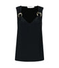 Simona Corsellini sleeveless viscose top with wide-shoulder suspender neckline.