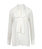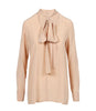 Sportmax Elleni longline blouse in pure silk crepe de Chine with a straight fit and deep V-neckline. Knotted sash at the neck and cuffs with cufflinks add a refined note.