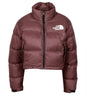 The North Face W Nuptse Short jacket, short model, features a boxy fit, made in the original shiny ripstop fabric and recycled fabric inserts for nature conservation, high collar with fold-in hood, zippered front closure, zippered pockets, long sleeves with Velcro cuffs, embroidered logo on front and back back.