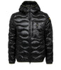 Blauer Wave down jacket model made of water-repellent technical fabric, quilted in waves. with light, warm and not bulky padding, with hood, front zipper closure, zippered pockets, Iconic logo shield on left shoulder, logo on left side chest