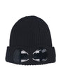 C.P. Company hat made of extra fine merino wool, ribbed pattern work, with Goggle lens lapel on the front.