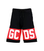 GCDS Band Logo Bermuda made of cotton with double-thickness yarn, contrasting circular screen-printed logo band on the legs. Iconic pattern of the brand.