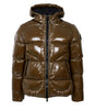 Herno polyamide down jacket with gloss finish, short quilted pattern, with down filling. Hood with elastic drawstring, with front closure with double-slider zipper, two slanted oval front zipper pockets, long sleeves with elastic cuff. Rubberized logo on left sleeve shoulder, elastic bottom hem, regular fit. Made in Italy.