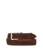 Orciani mud cloudy suede belt with double stitching and metal buckle with silver finish.