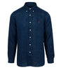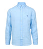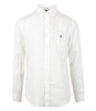 Polo Ralph Lauren linen shirt, pointed button-down collar, buttoned cannon, long sleeves with buttoned cuffs, split back yoke with pleats. Exclusive embroidered pony on the left side of the chest.