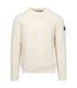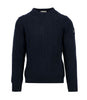 Roy Roger's Fisherman wool and cashmere blend sweater, knit with braid pattern on chest, ribbed crew neck, long sleeves with ribbed cuffs, Roy Roger's denim patch applied on left sleeve, ribbed hem.