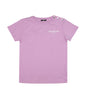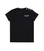 T-Shirt Balmain Kids in cotone nero, girocollo, maniche corte, chiusura sulla spalla sinistra con bottoni argentati, logo gommato sul fronte lato sinistro.