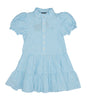 Abito Ralph Lauren Childrenswear in cotone con motivo a righe verticali. Modello romantico con dettagli con rouches e balze per una silhouette svasata.