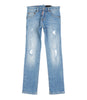 Jeans Dsquared2 Kids in denim di cotone con effetto delave per regalare una nota di carattere all'aspetto vintage, modello cinque tasche, chiusura frontale con bottone e zip con patta. modello con gamba accostata.