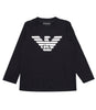T-Shirt Emporio Armani Junior in cotone, girocollo, maniche lunghe, stampa maxi logo sul torace, fondo dritto.