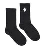 Calzini Marcelo Burlon Kids in cotone nero con lavorazione a coste e logo a croce bianco a contrasto ricamato sulla parte esterna.