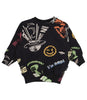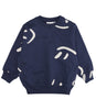 Felpa Molo Monti in cotone biologico con interno spazzolato, girocollo, con stampa all over maxi sorrisi, maniche raglan con polsini a costine, fondo con bordo a costine, etichetta logata sul laterale. (GOTS Organic da Ecocert Greenlife, licenza n. 197496)