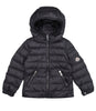 Giubbotto Moncler realizzato in nylon léger con imbottitura in piuma e iconica trapuntatura a boudin. Il modello ha un design ad A pulito e lineare con cappuccio.