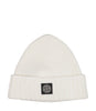 Cappello Stone Island Junior realizzato in misto lana e cashmere, lavorazione a coste, con risvolto e patch logo Stone Island Compass applicato sul davanti. Finezza 7.