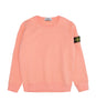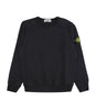 Felpa Stone Island Junior in cotone nero, lavorazione in jersey, girocollo, maniche lunghe con polsini a costine, cuciture tono su tono, sulla manica destra applicazione patch con logo rimovibile, orlo dritto, fondo a costine, vestibilità regolare