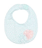 Bavaglino Nanan in cotone bianco e rosa, applicazione floreale lato sinistro, chiusura posteriore con bottone automatico.