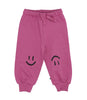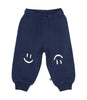 Pantalone Sportivo Molo Simeon realizzati in cotone biologico con interno spazzolato, che li rende morbidi e caldi da indossare, vita elasticizzata e coulisse, stampa con piccole faccine sorridenti sulle ginocchia, fondo delle gambe con polsini a costine, etichetta logata sul bordo.