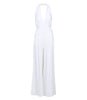 Tuta Aniye By Bella in tessuto stretch dalla silhouette scivolata, scollo a V profondo con colletto halter, punto vita risaltato dalla cintura in tessuto stesso tono, pantaloni a gamba ampia.