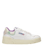 Sneakers Autry CLC Low Woman realizzata in pelle con dettagli in suede, colletto alla caviglia in mesh imbottito, con battistrada in gomma a rilievo, modello basket.