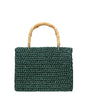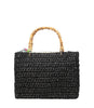 Borsa a Mano Chica Venere in rafia con manici in bambù, tracolla a catena regolabile e removibile, pochette interna in cotone a fantasia removibile.
